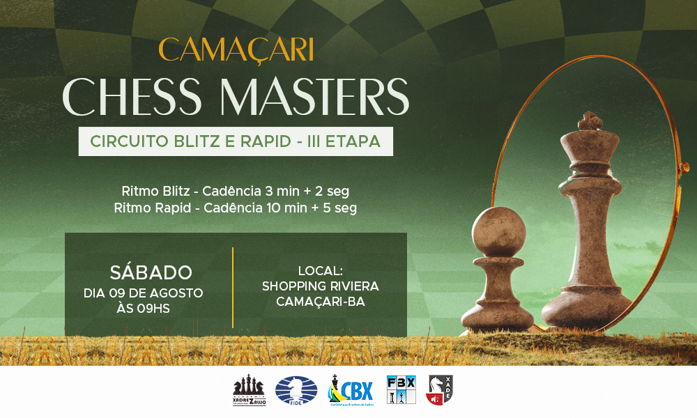 A III Etapa do Camaçari Chess Masters – Circuito Blitz e Rapid 2025 constitui-se em uma das manifestações mais significativas do xadrez baiano contemporâneo, reunindo em um mesmo espaço a ousadia da juventude e a experiência dos veteranos, numa atmosfera de competição técnica e elevação intelectual. Realizada no município de Camaçari, notório polo cultural e industrial da Bahia, esta etapa se insere como peça central de um circuito que ultrapassa o mero torneio: trata-se de um projeto orgânico de valorização do xadrez enquanto arte-ciência-esporte, integrando escolas, clubes, mestres e aprendizes numa cadeia virtuosa de aprendizagem e disputa saudável. A organização da competição, capitaneada por nomes já consagrados da arbitragem e da direção técnica no estado, demonstra um rigor compatível com eventos de nível nacional e internacional, especialmente pelo alinhamento às exigências de homologação da FBX, CBX e FIDE. Mais do que apenas aplicar partidas nos ritmos Blitz e Rapid, esta etapa cumpre o papel de consolidar o Camaçari Chess Masters Club como um dos eixos estratégicos do xadrez nordestino, graças à persistência de seus promotores e ao apoio progressivo de instituições que reconhecem no jogo milenar um instrumento pedagógico, formativo e socializante. O Shopping Riviera, local escolhido para sediar a etapa, oferece ampla acessibilidade, conforto e visibilidade, favorecendo a integração entre competidores e espectadores, o que contribui para desmistificar o xadrez como prática isolada, elevando-o à condição de espetáculo racional.